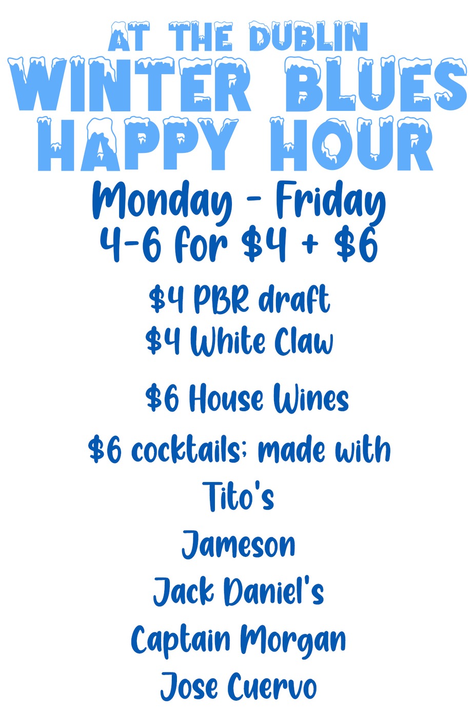 4pm-6pmWinter Blues - Happy HourMonday, February 23rd, 2026